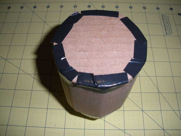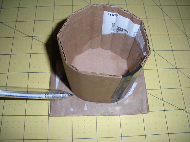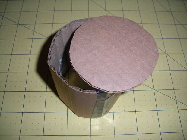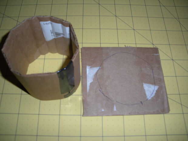 Traza el borde inferior del tubo sobre otro trozo de cartón. Una brújula puede utilizarse también para crear un círculo que cubrirá uno de los extremos del tubo. Se acabará esta pieza como la Copa de su sombrero. Hacer una pequeña marquita en ambas piezas por lo que puede ajustarlos más tarde. Cortar el círculo de cartón y cortar del mismo tamaño en fieltro. He utilizado fieltro negro para los míos, pero ser creativo. Asegúrese de hacer el círculo de fieltro un poco más grande que el cartón. Es aceptable si el círculo de fieltro es mucho más amplio, siempre puede cortar el extra pero no pegue en. Cinta adhesiva en la parte superior del sombrero con el tubo.