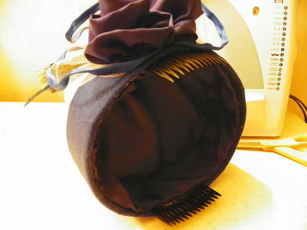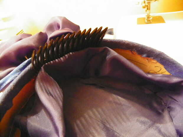 Usaba el forro de la falda para el forro del sombrero, pero puede utilizar cualquier tela ligera. Con el óvalo de cartón como guía, corte un trozo de tela más grande todo el camino alrededor de 1/2". Para la tira de lado, corte una pieza 4 "x 25". Doblar el óvalo en la mitad longitudinalmente y pin en la parte superior e inferior. Prender con alfileres la tira de lado a la oval, derecho. Usando una 1/2" costura coser el panel lateral a la pieza superior del revestimiento. Coser juntos los extremos del panel lateral. Antes de que pega el forro en el interior del sombrero, pegue un peine a cada lado del sombrero, en el interior. Aproximadamente 1/3 del peine se intercala entre el sombrero y el forro, y sobresaldrán 2/3 por debajo de la parte inferior del sombrero. Localice la parte de atrás del sombrero en el interior. Colocar un punto de pegamento caliente en la parte posterior del sombrero, colocar el margen de costura de la guarnición (donde el panel lateral está cosido en el óvalo). al punto de pegamento. continuar pegando el forro en el interior del sombrero todo el camino alrededor. Asegúrese de que usted tire de cualquiera de esos hilos molestos pegamento que persistir. Tenga cuidado de cómo se almacenan estos sombreros para que no Haz roto la tela metálica, plumas y rosas de tela. He comprado una forma principal de espuma en una tienda de artículos de belleza.