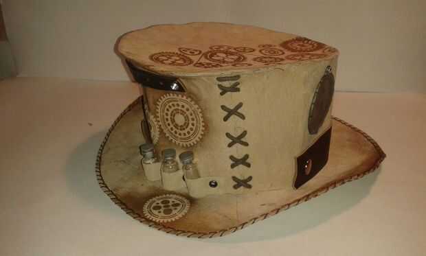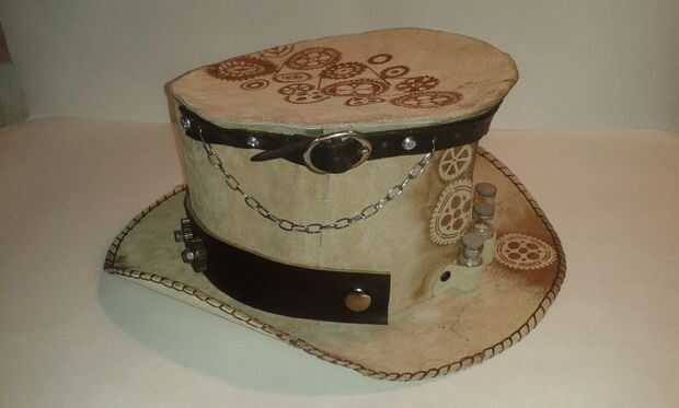 Mi sombrero de Steampunk. Cambió de diseño original, pero hará un gran adorno para el traje que estoy haciendo. Lo hice para que el sombrero se fue intacto puesto que era un regalo y más agradable que uno que quisiera dañar. Si el proyecto o tiene al