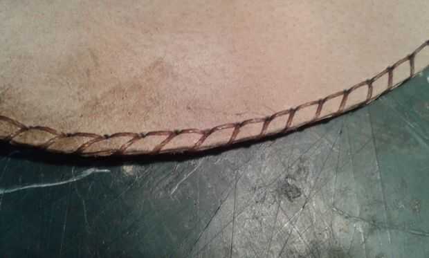 Con una pasta hecha con servilleta de cocina, agua y goma blanca, di ONU Cuba interno y externo al sombrero para darle rigidez. Luego con goma de zapatero encole ambas superficies la del molde y las piezas de cuero cuando estuvieron secas uní.