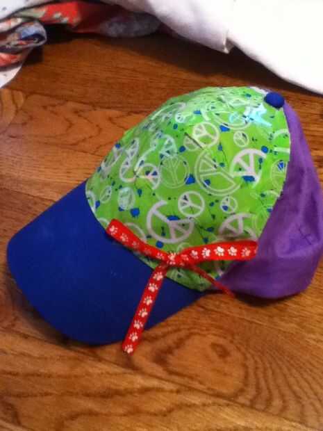 aquí es una manera económica de hacer un patrón para un gorro. Encontrar un lindo sombrero rayado amarillo en la tienda de segunda mano, pero quería utilizar para hacer un patrón. Encontré una camiseta en la tienda de segunda mano en un estampado flo