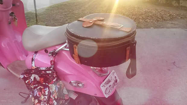 He tenido esta nevera sombrero viejo de mentira alrededor de la casa por un tiempo. Tengo una colección enorme sombrero, pero no quería usar esta divertida caja para almacenamiento ordinario. Cuando llegué a mi vespa, sabía exactamente qué hacer con él. Espacio en un scooter o una bicicleta es limitado y una de las cosas favoritas de la banda hacerlo en días de calor es para empacar juegos y comida para disfrutar en el césped de la Plaza local. Con esta caja de sombrero, puedo viajar en estilo tanto dentro como fuera de mi scooter. Puede ser firmemente y luego se retira del bastidor a los elementos de transporte después de llegar a mi destino. Añadir su propia caja única a la parte trasera de tu moto o scooter!