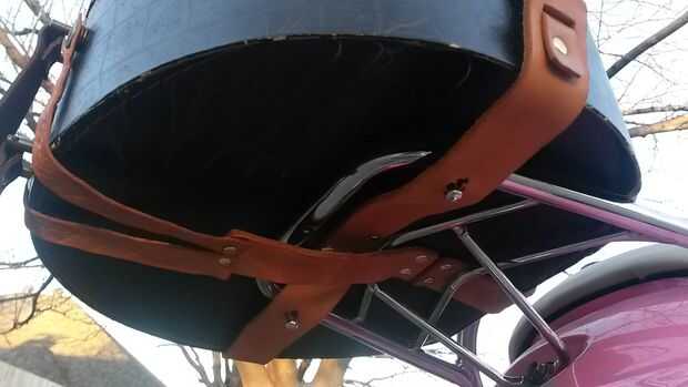 El cuadro de fieltro muy robusto con sólo la correa de una, pero no estaba segura de cómo lo manejaría si nunca pongo nada torpemente pesados o ponderados. También me encantó la primera correa y decidido se vería mejor con otro. Por lo tanto, he añadido otra cinta remachada en la parte inferior del centro, con orificios para fijar al bastidor y broches de presión en los lados.