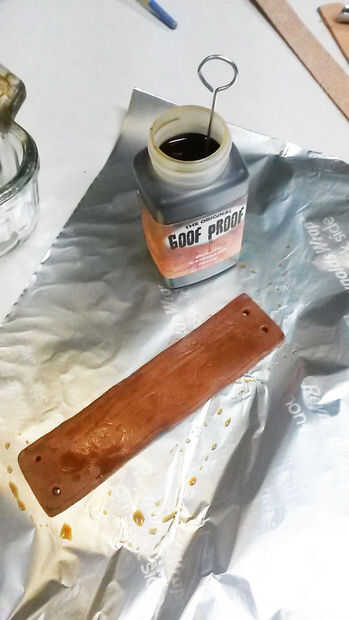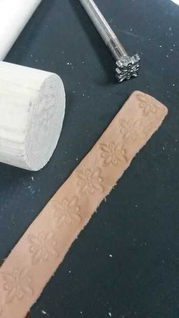 Yo no la estampilla la correa grande porque sería exclusivamente en la parte inferior. Las correas pequeñas se mostrarían en el frente, usé mi sello de cuero sobre ellos. Estampar sobre una superficie dura y golpear solamente el sello de una vez con el mazo. Si usted golpea más de una vez, es probable que mover y crear una impresión doble y messier. Si no has tenido mucha práctica con esto, no te preocupes si no sale perfecto. Mezclan muy bien a distancia.