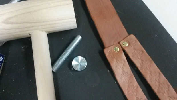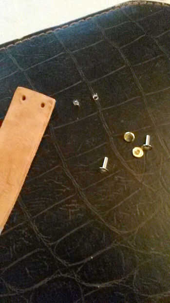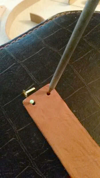 Remache de las correas de pequeña a la grande siguiendo las instrucciones en el paquete del remache.