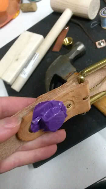 Como avanzaran y remache y broches de presión en la caja, puede volverse difícil de martillo los remaches ya que no se pueden poner sobre su superficie dura. Tuve que usar varios elementos diferentes, incluyendo una caja de la receta, varias longitudes de placas y otros objetos colocados dentro de la caja del sombrero una superficie para los remaches en. Me pareció útil a la herramienta de la placa base de remache en la parte inferior del remache con cinta adhesiva para que no se mueva. Hay un ejemplo de esto en las imágenes usando cinta púrpura.