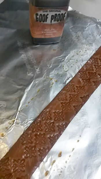 En el pedazo de correa corta, utilizar el sacador de agujero para poner los agujeros en su caso ajuste la hebilla. La hebilla no se utilizará una vez atado, tan sólo un agujero es necesario, pero más pueden darle cierta personalidad.