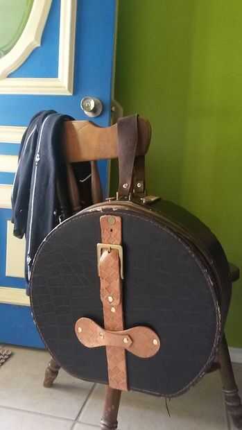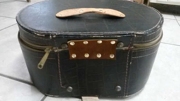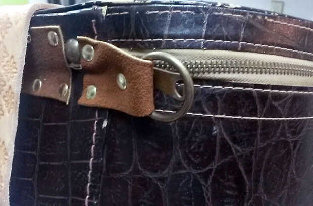 Durante el trabajo, la bisagra en la parte posterior (hecha de cartulina) fue mal ripeada. Me corte un pedazo de cuero y había remachado a la parte posterior para soporte.