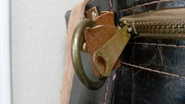 También quería que el cuadro sea bloqueable. No puedo posiblemente hacer esta prueba de robo de la caja ya que fácilmente podría ser reducido abierta o quitada, pero una pequeño disuasión puede ir una manera larga para prevenir un ladrón oportunista. He añadido una aleta con un anillo metálico que podría ser bloqueado a la cremallera y evitar que la bolsa se abra más de un par de pulgadas.