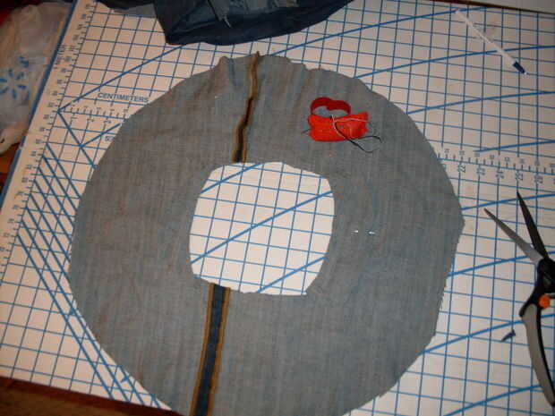 Para solucionarlo, me corte 2 piezas en forma de luna y había cosido a los lados del círculo interior, haciendo la espera más pequeños.