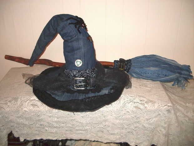 Tome más negro, material de desecho y otro cinturón de hebilla y péguelo donde el palo de la escoba con la bolsa.
