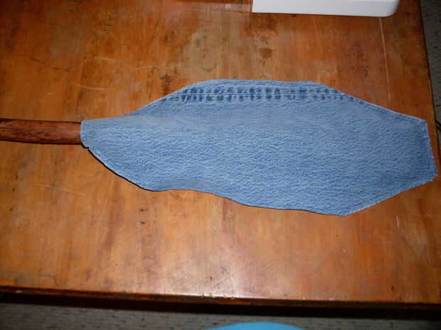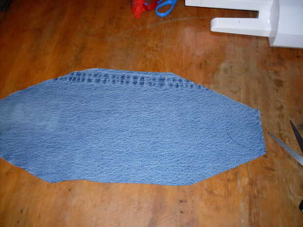 Corte una forma ovalada (con extremos rectos, romos) de una pernera. Coser, dejando abierta la parte superior.