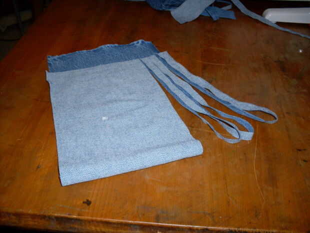 Para las cerdas, corte un 24 sección-30 pulgadas de pantalón de la pierna, dobla casi la mitad, dejando una sección de 1 pulgada en la parte superior. Inicio cutiing las tiras. Necesita al menos 3 pantlegs para esto.