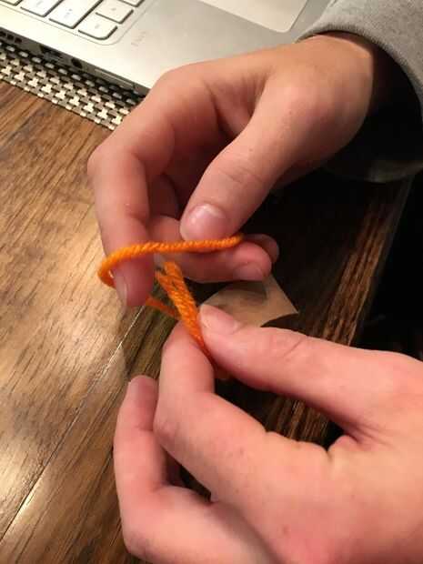 Coge una hebra a la vez y pega un extremo a través de la función. Luego meta el extremo abierto por la parte inferior del hilo y tirar cómodo.