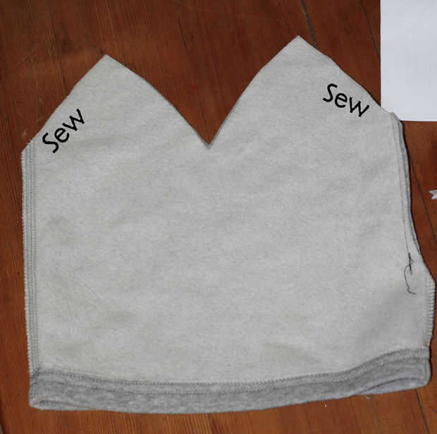 Vuelta de adentro hacia afuera y coser los dos puntos Redondeando los bordes.