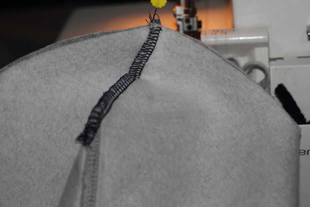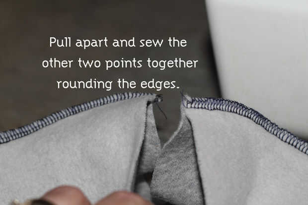 Abre el sombrero y cose los otros dos puntos de un extremo a otro.  Cubrió la mitad juntos en la costura.