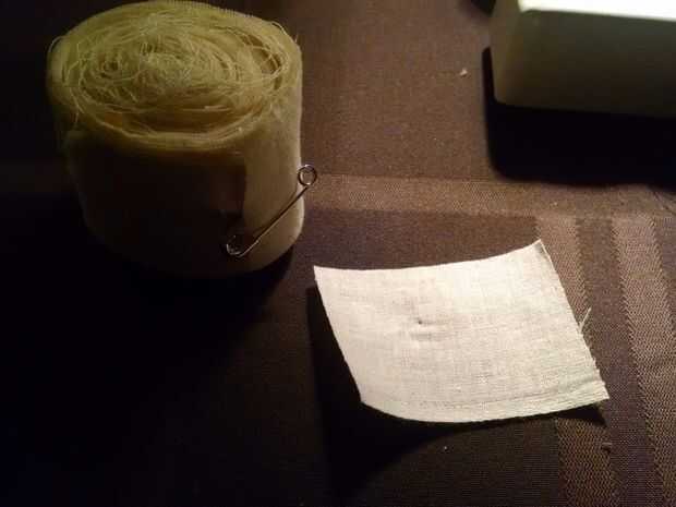 Si lo desea, puede Agregar un pequeño rectángulo doblado de muselina aquí para usar como un nombre.