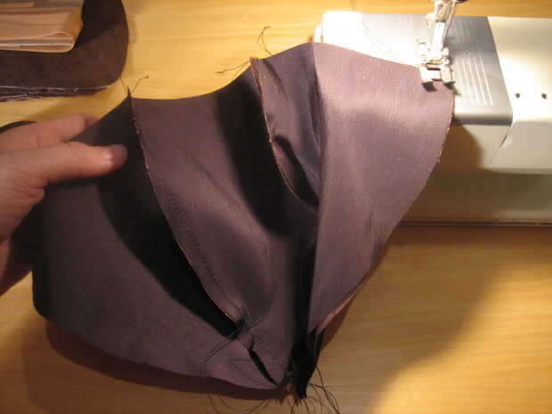 Entonces usted puede coser la costura final, que será una línea recta. Créeme que no quieres probar a coser el sexto de una tarta en el lugar alrededor del punto de la misma. Incluso el último tercio es difícil - ir alrededor de los puntos es sólo difícil y allí hay que hacer aquí por.