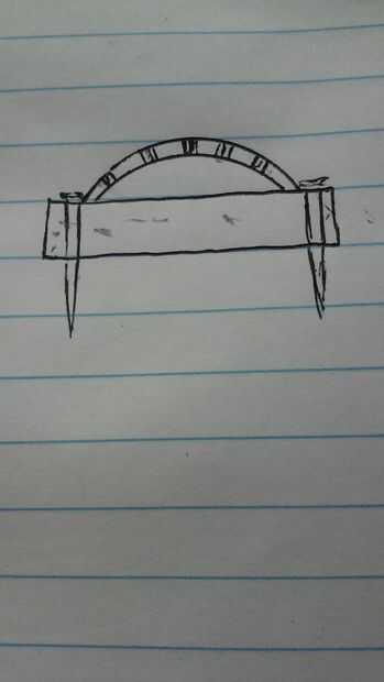 Mi primer diseño implicados cinco postes Unidos horizontalmente en los extremos. Una pieza de seis pies de hilo todos actuaría como el punto de pivote y el dispositivo tensor. Yo incluso llegó a perforar los agujeros una 2 "x 3" que tenía por ahí para crear una plantilla de aro.