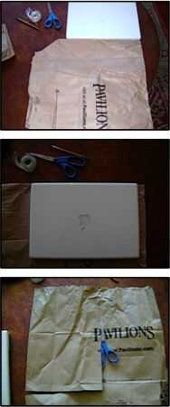 -Corte de aprox. 1 pulgada (3cms) de la localización de su ordenador portátil, cortando a través de ambos lados de la bolsa. Ver imagen 3. (Llamar a esta pieza, una pieza).