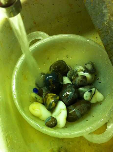 Agitación es el arte de poner rocas, polvo abrasivo y agua en un recipiente cerrado y gira lentamente durante dos semanas 24/7...