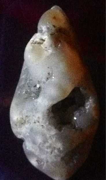 Ver una pequeña geoda (que es un nódulo de cuarzo dentro de una bola de roca dura)...