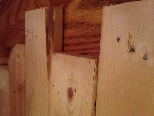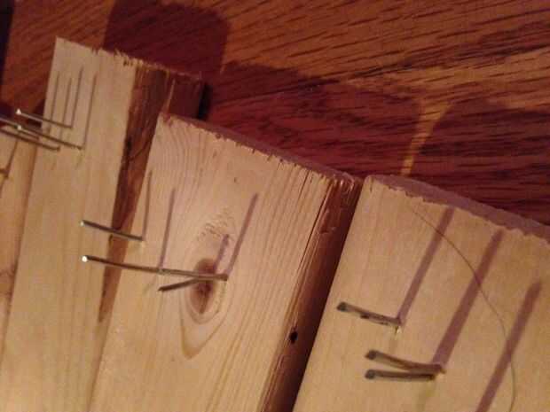 Una vez que usted tire sus listones de la cama, usted querrá deshacerse de las grapas. Hubo 6 grapas en cada tablero. Usé un vice grip para agarrar a cada uno y tuerza apagado. No lo limpia para hacerlo, pero funciona bastante rápido. Puede entonces volver atrás con un martillo y enterrar la broca de metal en la madera. Sólo asegúrese de que no pinche el dedo cuando se trabaja con los tableros.