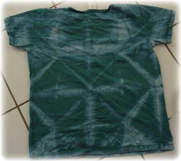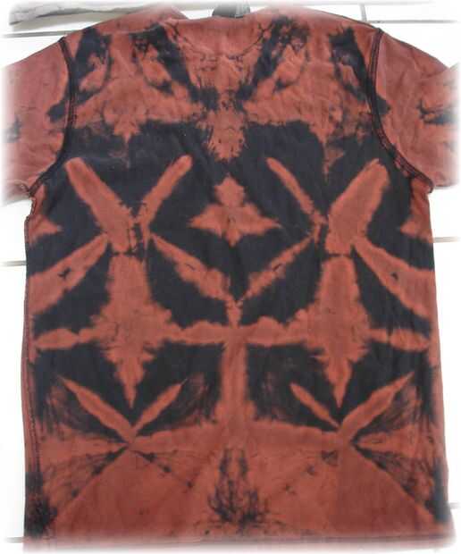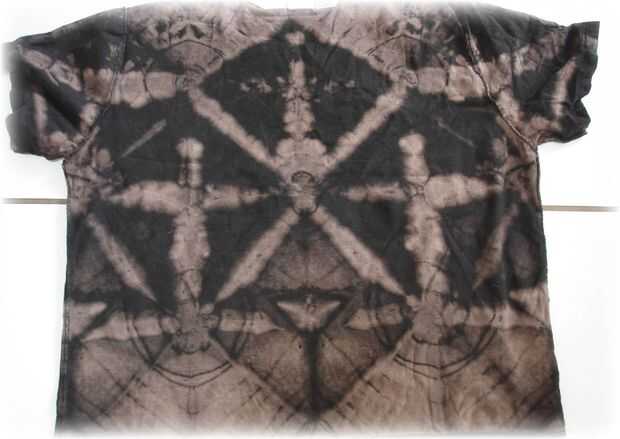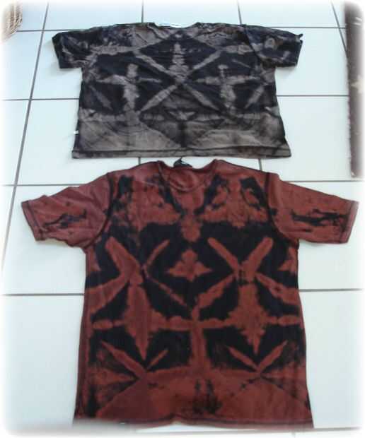 No estaba satisfecho con el resultado del primer doblez de la flor, así que buscó mi desordenado armario y encontró dos camisas negras de mi y volví y doblado y les blanqueado! Estas son camisas más finas más pequeños, y éstos trabajaron mucho mejor. Creo que la camisa de otros fue tan grande, que la anchura plegada era demasiado grande para mucho tinte penetrar. Fue también una camisa algo gruesa para comenzar con. Estas camisas más pequeño salieron justo!