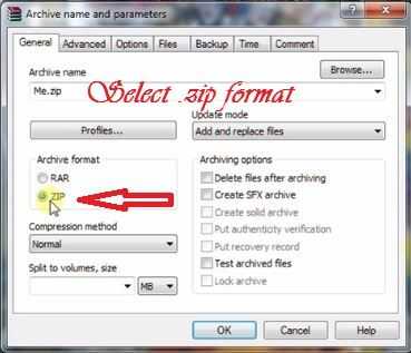 Ahora ingrese un nombre de archivo y seleccione formato zip