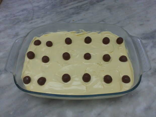 . Último paso colocamos los maltesers. y ponerlo en el congelador durante 30 minutos. Y disfrutar con ella