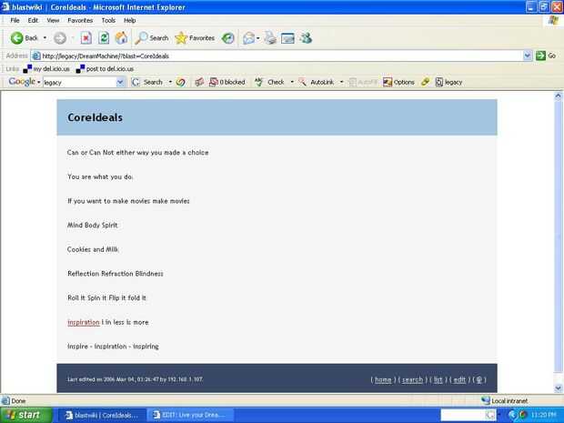 TiddlyWiki o el software detrás de la máquina de sueños es un solo archivo. Es altamente portátil para que pueda poner en la memory stick y llevarlo. En un ordenador portátil y llevarlo con usted. Computadora de su casa. En su equipo de trabajo. Incluso puede ponerlo en un servidor. Siendo un solo archivo es su mayor ventaja y la debilidad. Existen implementaciones que permiten uso del lado del servidor por varias personas que es lo que necesitas para alcanzar tus sueños. Así, la máquina de sueños softare o núcleo subyacente de que la máquina de sueños se encuentra en la parte superior del es ahora lo que quería. Cumple con casi todas mis necesidades y con las adiciones y modificaciones puede ser adaptado para cumplir con todos ellos.