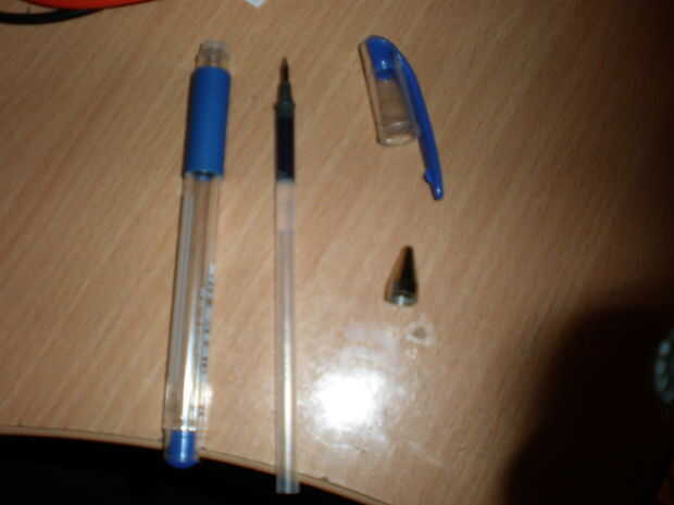 Limpie el caso y la punta metálica. Punta de metal no es realmente necesario, usted puede sustituir con pegamento.