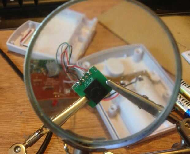 He decidido tener un ir en soldar el cable USB directamente en la placa principal, pero debo decir fue un poco complicado y solo corte los cables habría sido más fácil, si no tan profesional. Pero necesitaba sentir que estaba haciendo un trabajo profesional a pesar de que nunca nadie vería mi artesanía. Los colores de mi cable USB emparejar los colores usados en el sensor, que hace todo un poco más fácil.