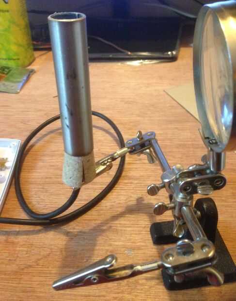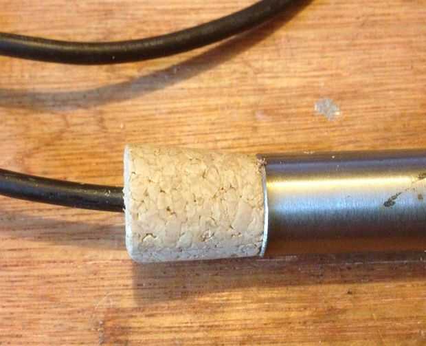 La primera foto muestra cómo se encamina el cable USB en la unidad del sensor. Siguiente muestra el cable soldado en el otro tablero más pequeño, pasando por un trozo de corcho pegado en el extremo del tubo del acero inoxidable. La próxima cosa a hacer girar el tubo vertical y vierta cuidadosamente algunos resina + endurecedor solución en la parte inferior de manera que actúa como un dispositivo de alivio de tensión en el cable y sellos de agua. El otro extremo del tubo está conectado con otro tapón de corcho que vapor de agua detectar en el suelo pero parar el agua líquido pase a través. ¿Clever eh?