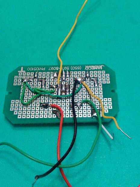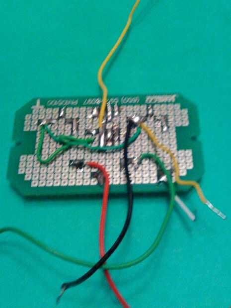 Ahora, dibuje un cable negro para conexión a la base común de su LED instalado previamente, y también debe establecer un cable amarillo entre los pasadores: 3 y 6 del zócalo del IC a conectarse más adelante el punto de la sonda. Por último, dibujar un par de cables desde el terminal positivo y negativo de este kit para que se pueden utilizar como conexión al terminal de la pinza de cocodrilo roja y negra respectivamente.