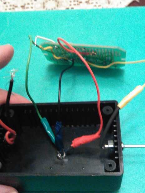 En este paso, conectar los tres terminales del LED RG mediante su cable del color respectivo para cada terminal de color de LED. Es decir, verde, negro y rojo cable debe conectarse verde, tierra común y terminal LED rojo respectivamente mientras que el cable amarillo debe conectarse al punto de la sonda. Tenga en cuenta que I´m con cinta de color para identificar cada conexión it´s obviamente opcional pero usted puede utilizarlos si quieres.