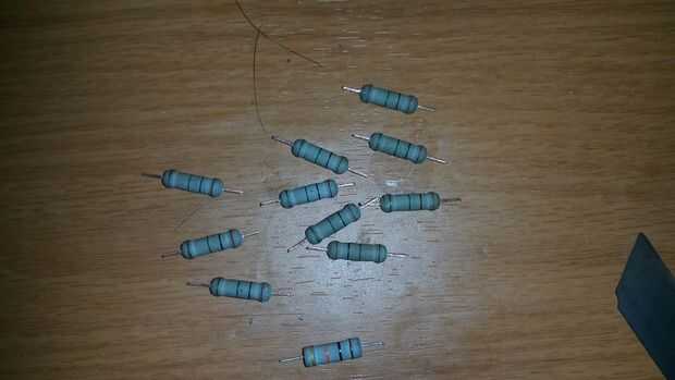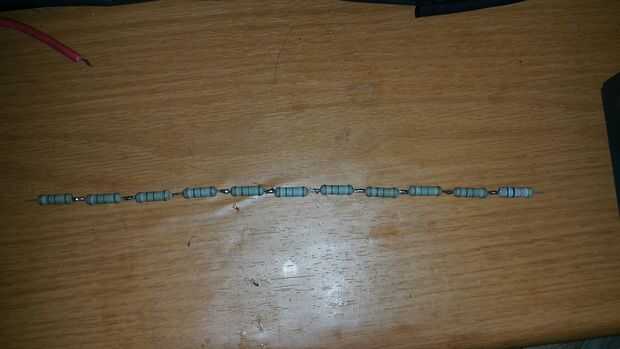 -obtener 10 pedazos de resistencia de 1MOhm 2 vatios y una pieza de resistencia de 2 watt de 10KOhm (Foto 1,2)