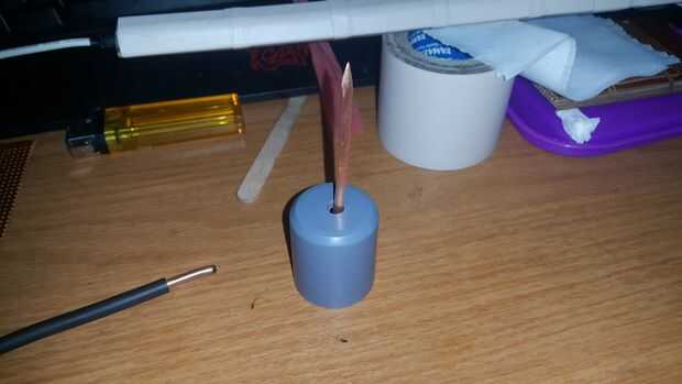 conseguir un tapón de tubo de pvc y perfore un agujero en el medio, tratar de hacer un agujero que es el mismo tamaño que el cobre, el cobre no moverse fácilmente, o trate de usar un pegamento para mantener en su lugar
