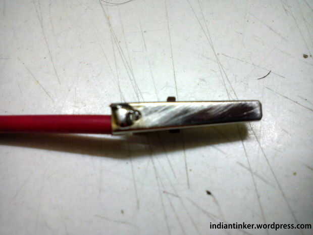 Corte la parte de la sonda 'original' que usted no necesita y luego deslice hacia abajo la parte del encogimiento del calor antes de que la soldadura. Entonces, el clip y deslice la manga de aislamiento de soldadura y tire hacia arriba del encogimiento del calor del otro lado y el calor para arriba firme la unión entre las sondas y el clip.