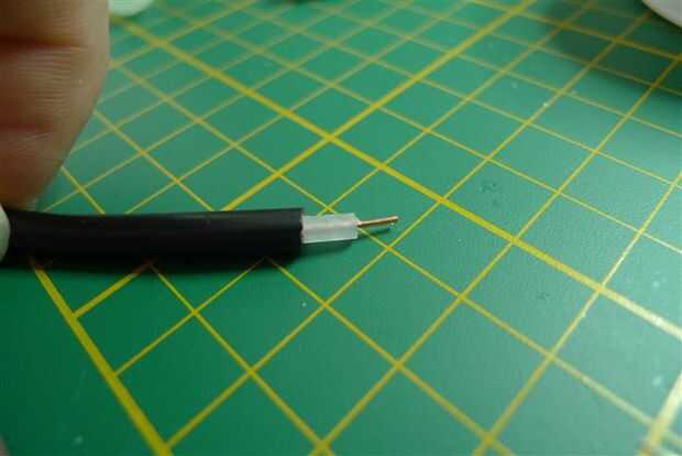 A continuación tendrás que tener cuidado y el aislamiento exterior y el blindaje de cable trenzado de aproximadamente 1cm desde el extremo cortado de la tira. No cortar el aislante interior! Luego cortar el aislante interior de unos 0,5 cm del extremo cortado. Que se vea como la primera foto.