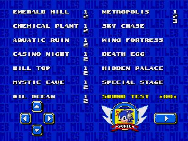 una vez que seleccione el nivel de página ha aparecido Desplácese hacia abajo para control de sonido y reproducir estas canciones en orden: 01,09,09,01,00,06,02,03 (Sonic 1) o 01,09,09,02,01,01,02,04 (Sonic 2) el anillo de ruido entonces debe jugar otra vez, una vez que escucha el rollo del sonido de anillo para arriba y elegir el nivel y le llevará directamente a ese nivel.
