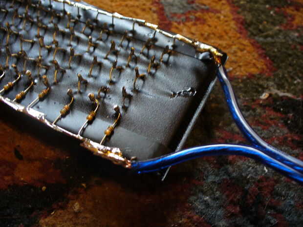 Luego necesitas soldar el cable a los lados respetados. Originalmente planeado en cableado hasta un módulo de sonido pero que no suministrar suficiente energía para encender todos los LEDs por lo que sólo los cableados directamente a mis subs.