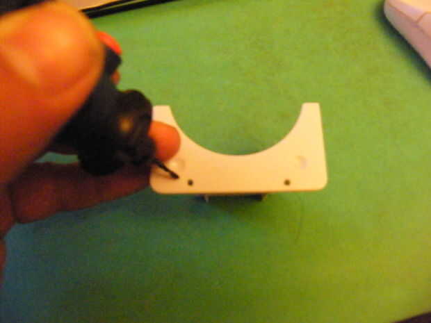 Una vez que estés feliz con la posición de sus marcas, cuidadosamente perforar en un ajuste lento para minimizar el 'deslizamiento' de la broca (y si se puede su placa de la abrazadera y el área con un pedazo de madera de desecho, tanto mejor).