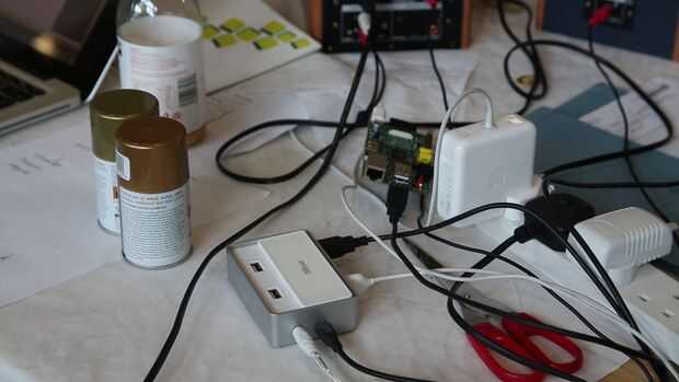 Modernizada, necesitábamos un concentrador USB como el Pi puede suministrar sólo un miserable 100mA y nuestro Phidget necesita un completo 500mA. Esto resulta útil para el uso de una memoria USB para transferir archivos, mientras que también teniendo un teclado y un ratón conectado. También podemos conectar el Pi sí mismo en este centro de energía con un cable Micro USB. El recientemente lanzado frambuesa Pi modelo B + debe hacer proyectos como este mucho más fácil, con 4 puertos x USB que pueden flexible hasta 1200mA de corriente cada uno!