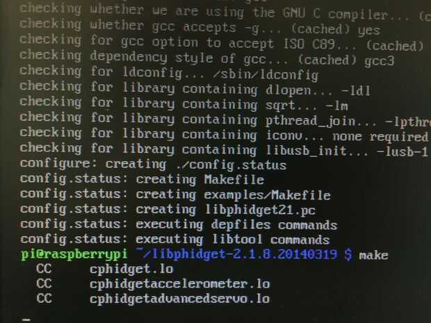 Luego podemos descargar el código fuente de libphidget y compilarlo. Cuidado, esta parte tuvo más de una hora en nuestra Pi! Después de esto también a instalar reglas de udev de Phidget para que procesos no root pueden acceder a hardware Phidget.