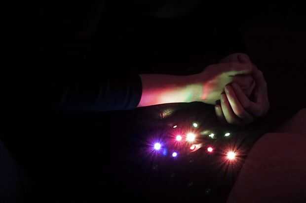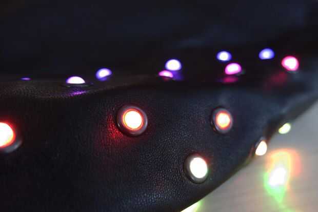 Usando hilo conductor suele ser una manera fácil de integrar electrónica. Sin embargo, cuando se trata de conectar varios LEDs RGB a una tira de la resistencia del hilo conductor es demasiado alta. La necesidad de LEDs se cosen bastante juntas lo contrario empiezan a parpadear o mostrar el color incorrecto.