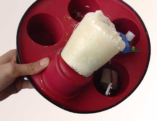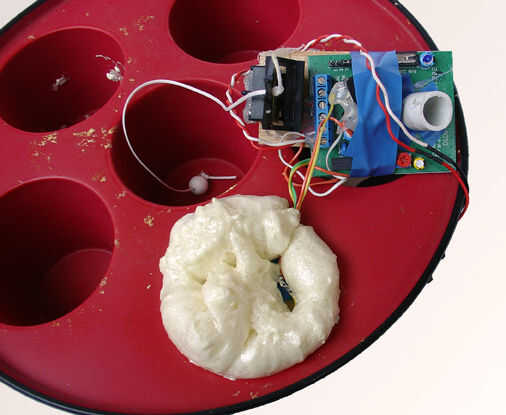 Si todo está bien, entonces encontrar un molde de silicona (cualquier molde de repostería debe funcionar) o cualquier otro PP PE empaquetado (espuma no va a pegar a él). También puede trabajar sin molde, colocando espuma trhe directamente en la electrónica.