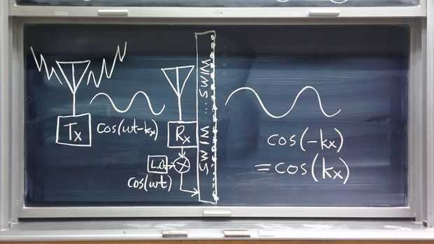 Una onda viajera puede ser representada por cos(ωt-kx). Un receptor del superheterodino toma esta señal y vamos a decir es en sintonía con la señal transmitida, así la frecuencia del oscilador local (tiza dibujo izquierda) cos(ωt). Por lo tanto el resultado, que baja a banda base es cos(-kx) = cos(kx).
