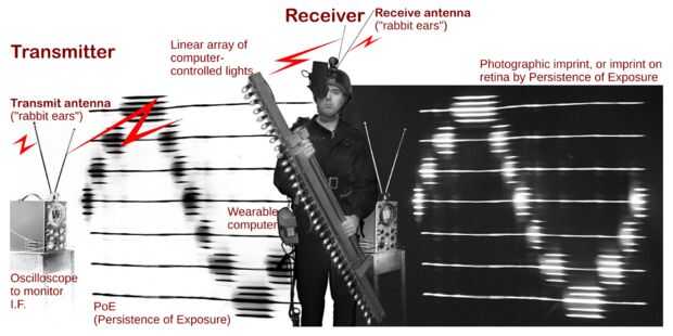 NADO (máquina de impresión de onda secuencial) es un dispositivo que imprime las olas en su retina o en el medio fotográfico como usted alrededor de onda en el espacio [Mann, IEEE CE 2015 4 4, cubierta + pp92-97] [Mann, cabrillas y chirplets, cubierta + pp99-128, mundo científico 1992].