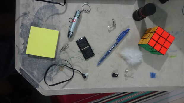Puntero láser con alimentación solar hecha de piezas bastante común y una lata altoids.